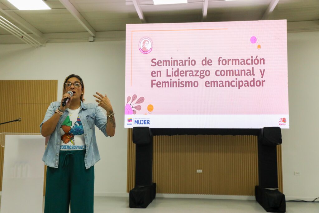 (Caracas, 8 de abril del 2026. Prensa MinMujer).- Con el impulso de la organización comunitaria de las mujeres, inició este miércoles, en el estado Aragua, el Seminario de Formación en Liderazgo Comunal y Feminismo Emancipador. El encuentro, que contó con la presencia de la ministra del Poder Popular para la Mujer y la Igualdad de Género, Yelitze Santaella, reunió a más de 200 lideresas de manera presencial y a cientos más conectadas por videoconferencia. La actividad se consolidó como un espacio para fortalecer las capacidades de quienes sostienen la vida comunitaria y promueven la esperanza en sus territorios, reafirmando el papel del liderazgo femenino en el tejido social venezolano.