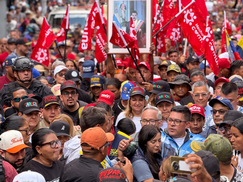 Lideresas de la Gran Misión Venezuela Mujer, junto a voceras del Movimiento de Movimientos Josefa Joaquina Sánchez, acudieron a la movilización como expresión organizada de un pueblo que reconoce en las mujeres un pilar fundamental de la resistencia nacional y de la continuidad del proyecto bolivariano.