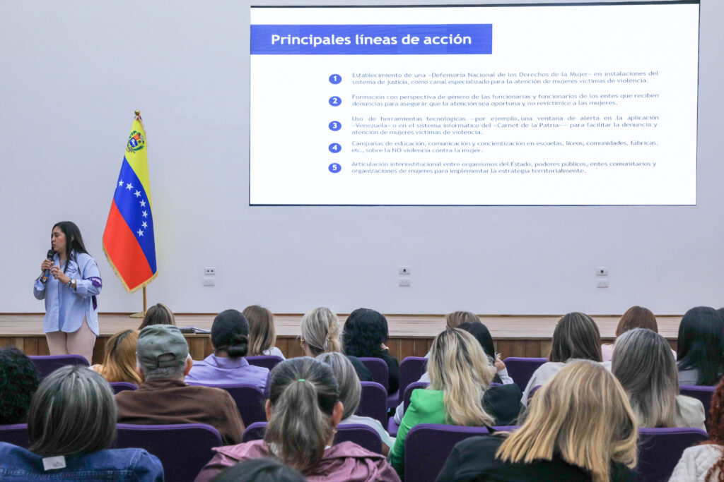 Por su parte, la viceministra de Igualdad de Género y No Discriminación, Nancy Ortuño, abordó la articulación entre MinMujer y la GMVM, a la que definió como una política estratégica del Gobierno Bolivariano para la atención integral de las mujeres. «La articulación del MinMujer y la GMVM debe ser coordinada, coherente y verificable. El territorio habla, demanda, y la política debe responder de forma coherente a esas necesidades reales», señaló Ortuño, enfatizando la importancia de la verificación de datos y del acompañamiento efectivo a cada mujer atendida. Asimismo, explicó que la GMVM dirige, articula, hace seguimiento, verifica impacto, gestiona y retroalimenta la política pública, escuchando a las mujeres en todas las instancias para garantizar la eficacia y la coherencia en la gestión, desde el nivel municipal hasta el nacional.