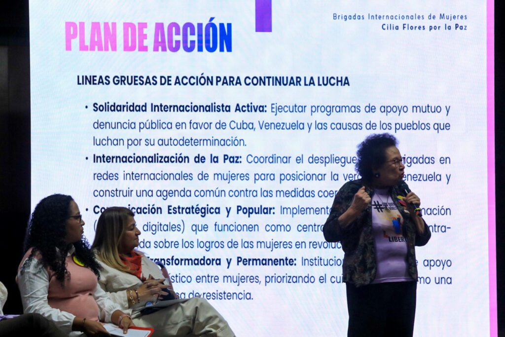 El encuentro de las Brigadas Internacionales de Mujeres «Cilia Flores por la Paz» reafirma el compromiso de las mujeres del mundo con la defensa de la soberanía, la autodeterminación de los pueblos y la construcción de una paz con justicia social desde la solidaridad feminista internacional.